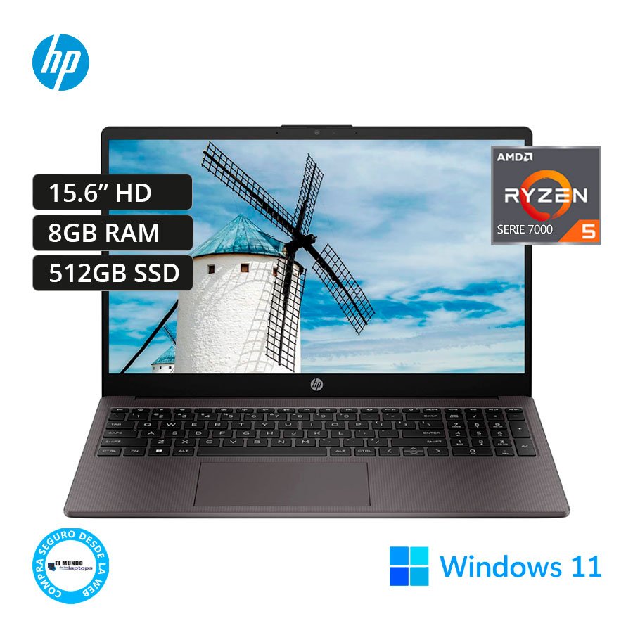 HP 255 G10 Ryzen 5-7520U, 8GB RAM, 512GB SSD, 15.6″ HD, Windows 11