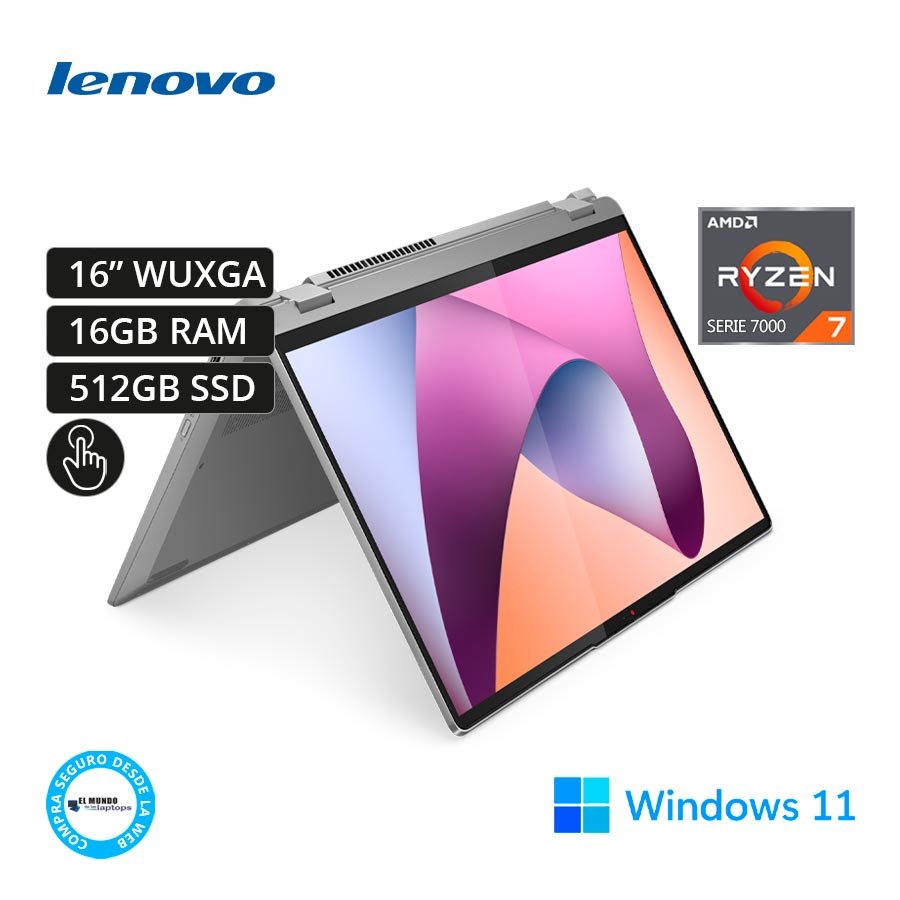 Lenovo IdeaPad Flex 5 16ABR8 82XY007BUS Ryzen 7-7730U, 16GB RAM, 512GB SSD, 16″ WUXGA Táctil, Windows 11